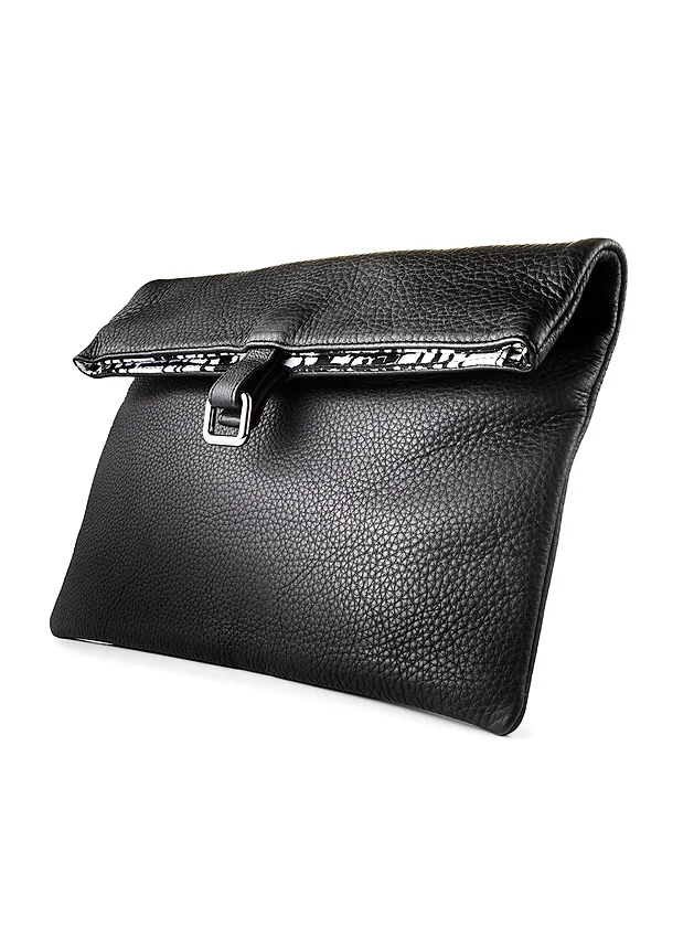 Red really makes a statement in this look! I love how it brings a fresh, modern spin to the color-blocking trend from past seasons, but in a more muted (even mature?) way. On top, a cozy gray sweater with a pleated gray skirt for comfort and warmth. The bottom half? Bold red tights with a higher denier, perfect for staying warm while staying stylish, finished off with matching red ballet flats. To top it all off, I chose the CBNY Fold-Over Clutch in Black—the perfect touch of elegance.